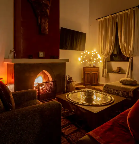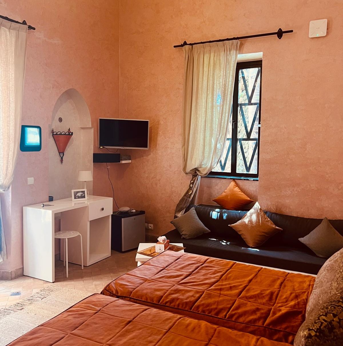 Configuration: Villa‑riad tout confort d’environ 650 m² Trois belles chambres principales avec salles de bain Bâtiment annexe avec deux chambres de style traditionnel en option. Propriété paysagée de 5 000 m²